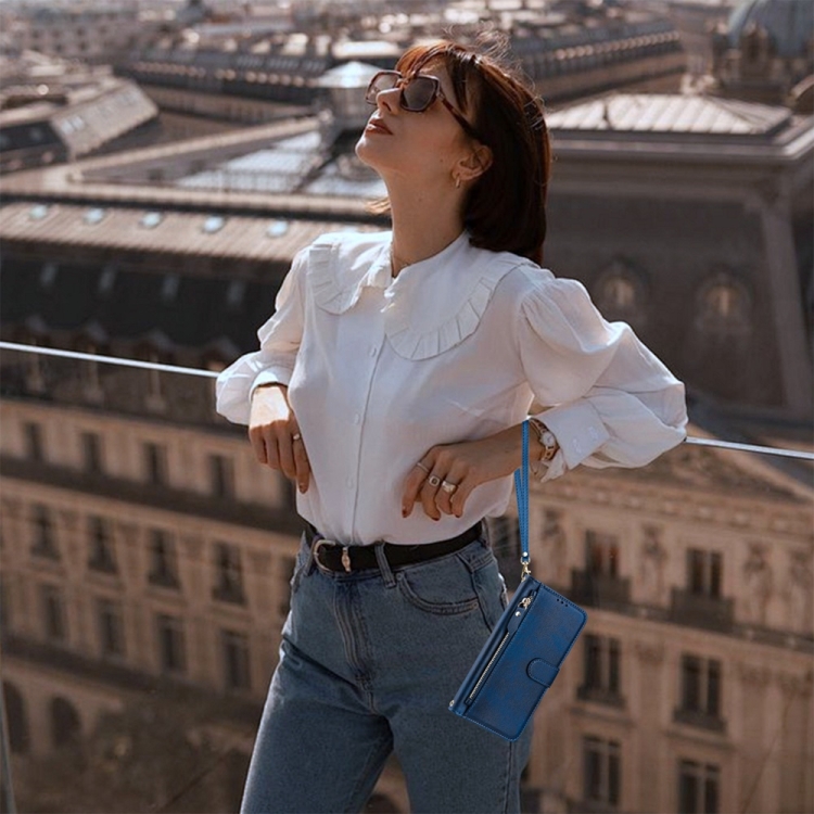 Funda de Cuero con Cremallera y Ranuras para Tarjetas Huawei Nova 12I 4G (Azul)