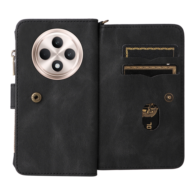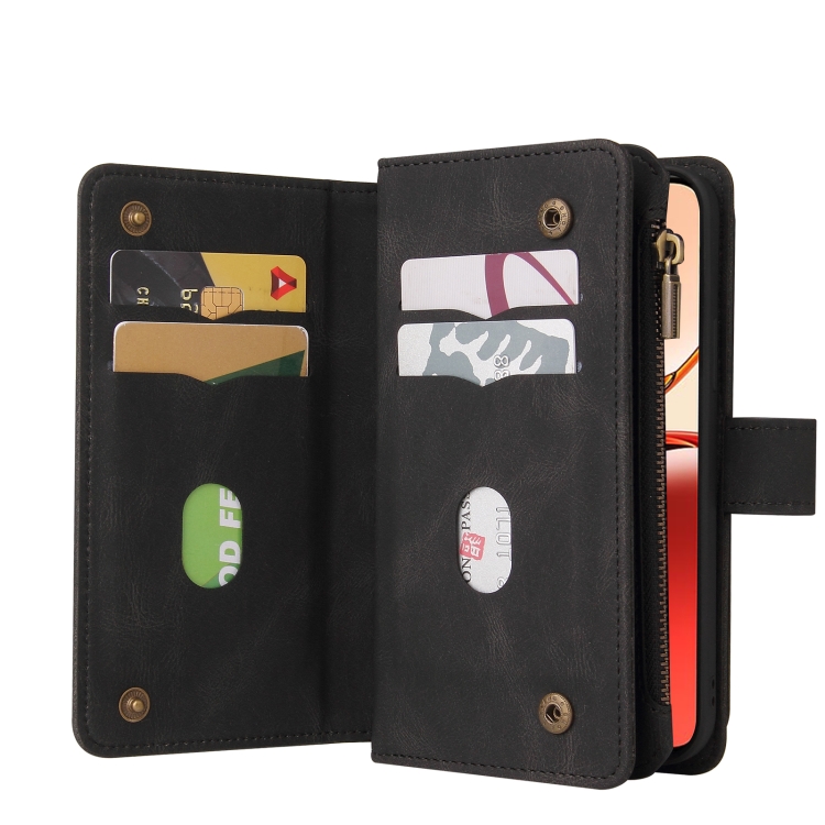 Funda de Cuero con Cremallera y Ranuras para Tarjetas Múltiples para Oppo Reno12 F 5G Global Skin Feel (Negro)