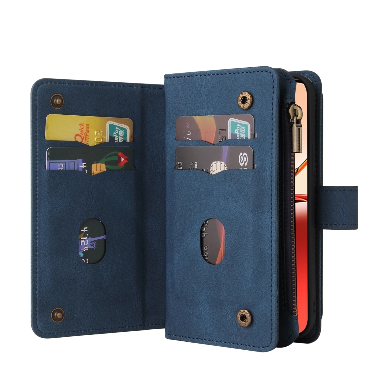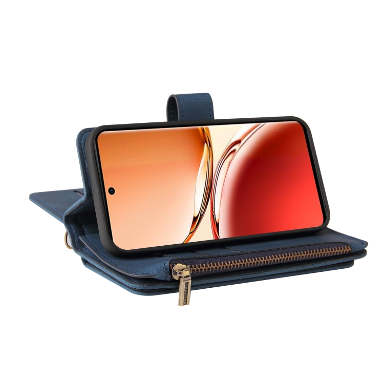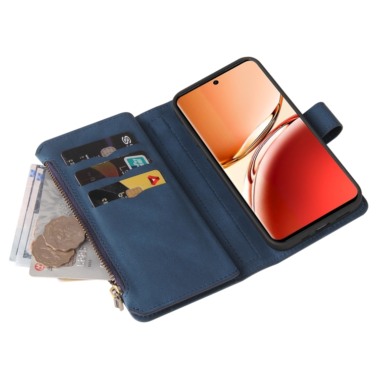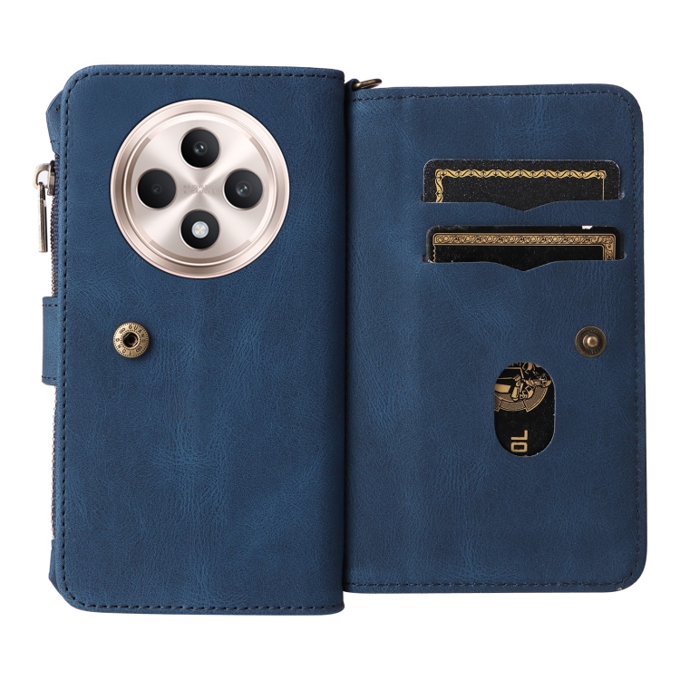 Funda de Cuero con Cremallera y Ranuras para Tarjetas para Oppo Reno12 F 5G Global Skin Feel (Azul)