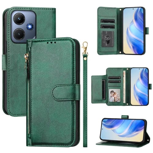 Funda de Cuero con Cremallera y Ranuras para Tarjetas para Infinix Hot 30I (Verde)