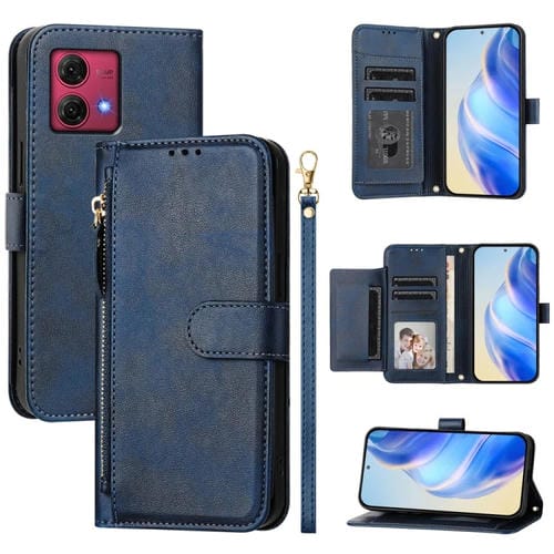 Funda de Cuero con Cremallera y Ranuras para Tarjetas Motorola Moto G84 (Azul)