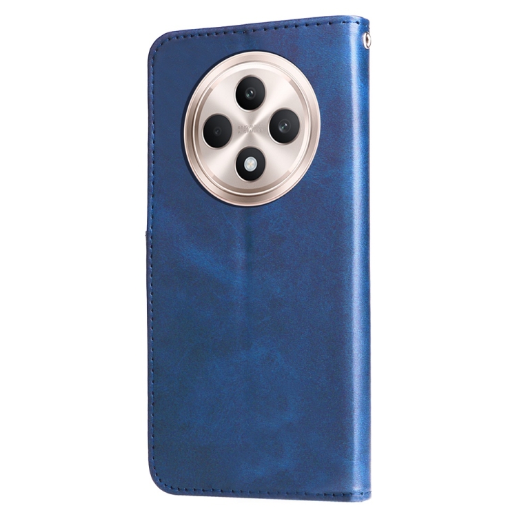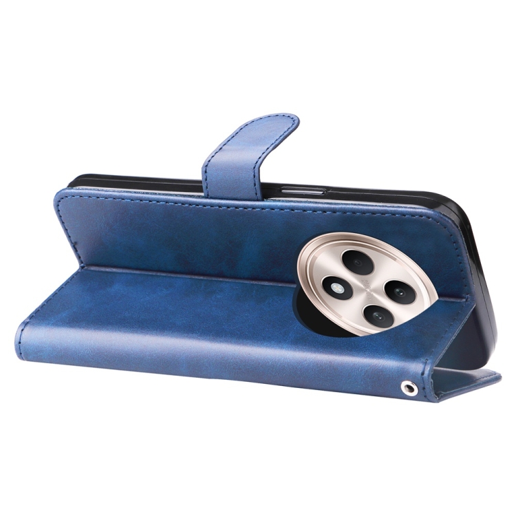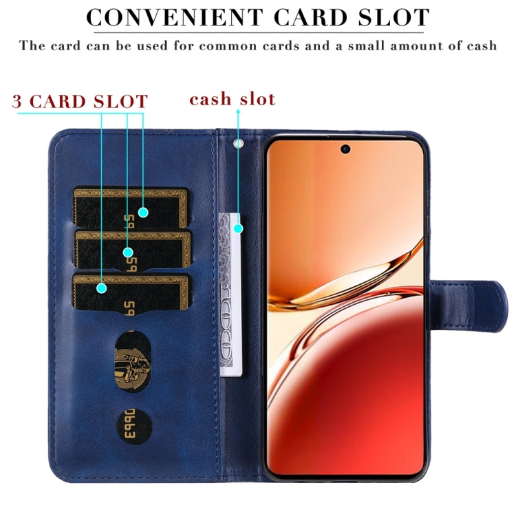 Funda de Cuero con Cremallera y Textura de Becerro a la Moda Global para Oppo Reno12 F 5G (Azul)