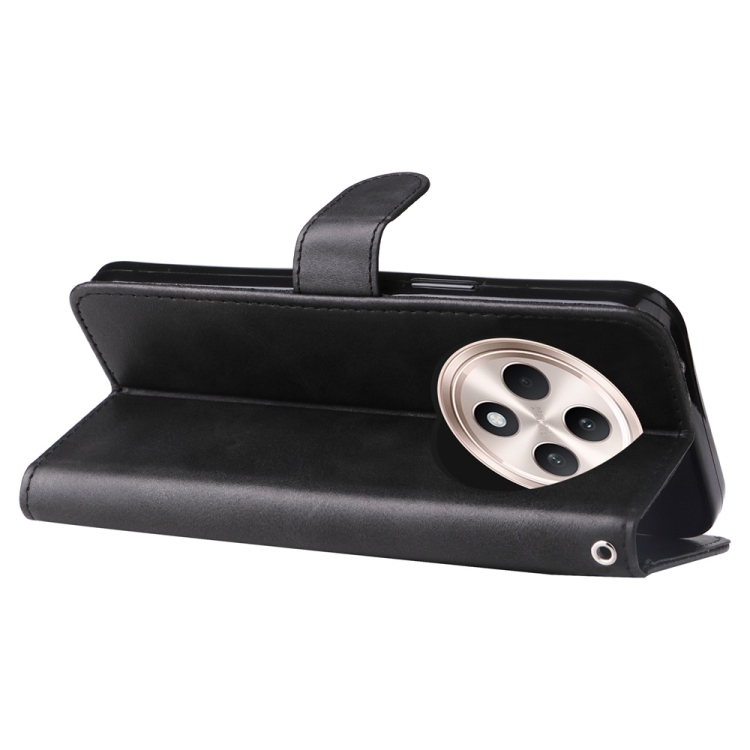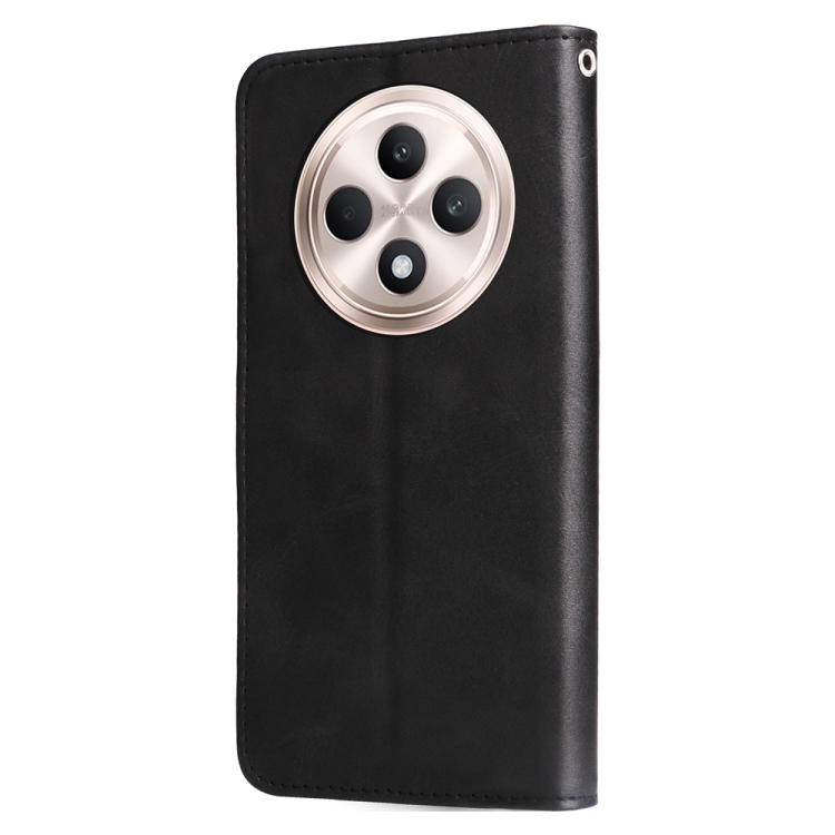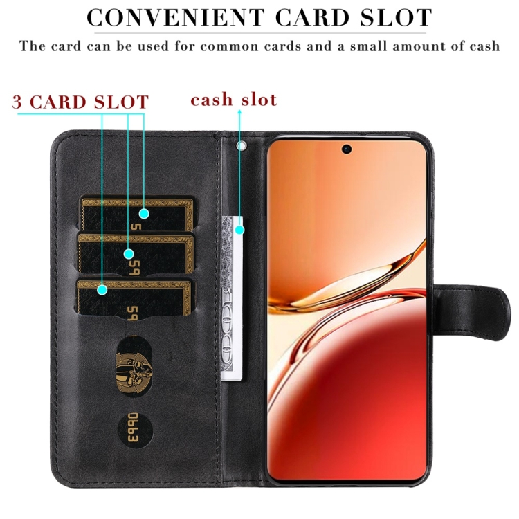 Funda de Cuero con Cremallera y Textura de Becerro a la Moda Global para Oppo Reno12 F 5G (Negro)