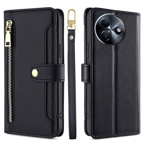 Funda de Cuero con Cremallera y Textura de Oveja para Teléfono Itel S24 4G (Negro)