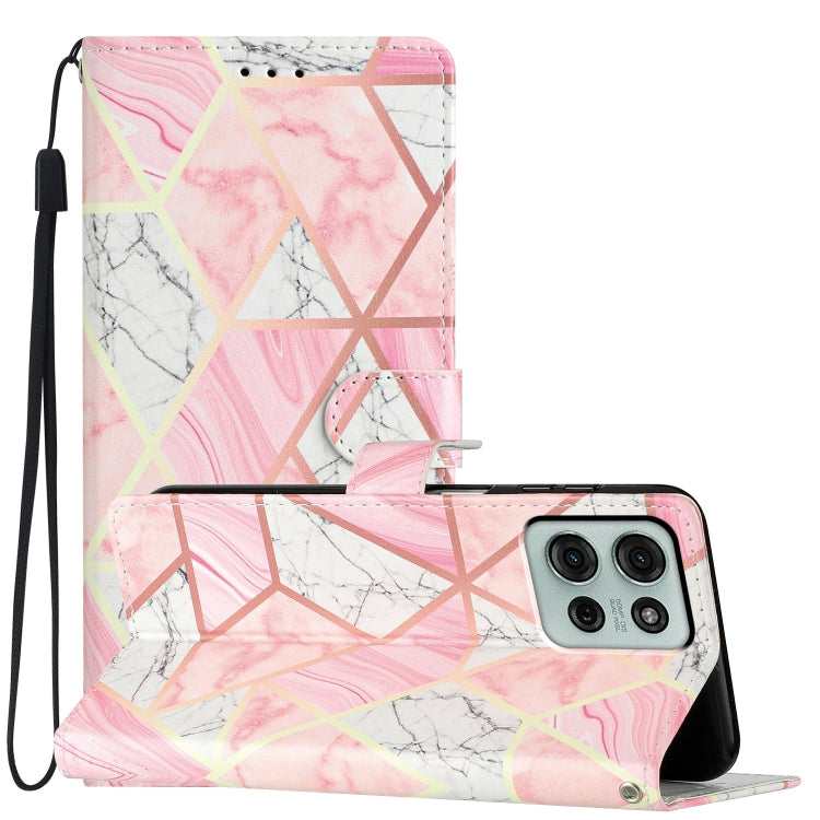 Funda de Cuero Motorola Moto G75 5G con Dibujo de Colores (Mármol Rosa)