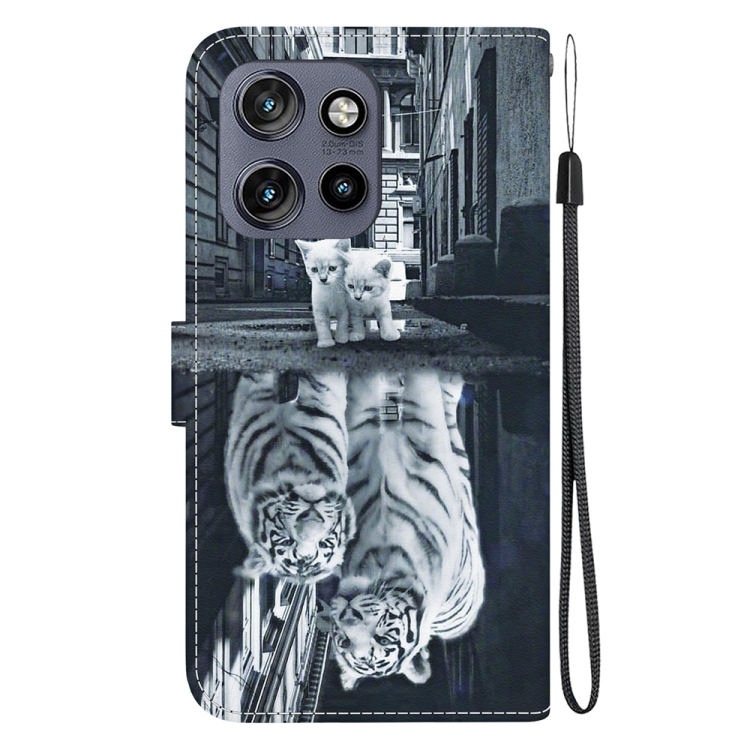 Funda de Cuero Motorola Edge 50 Neo 5G con Dibujo Colores y Textura Cristal (Reflejo Gato y Tigre)
