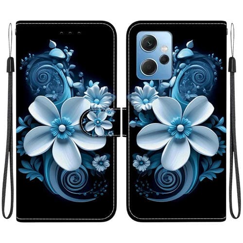 Funda de Cuero con Dibujo de Colores y Textura de Cristal Global para Redmi Note 12 4G (Orquídea Negra)