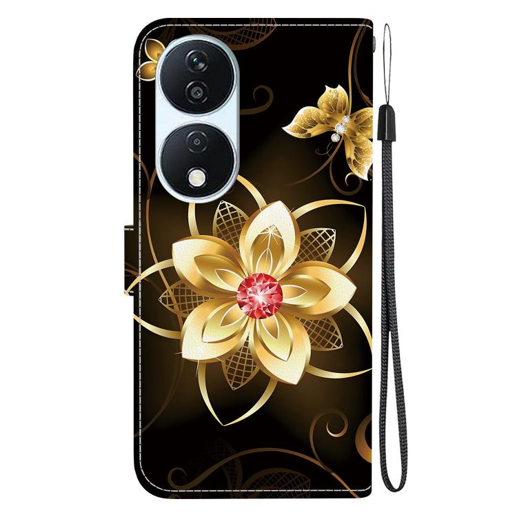 Funda de Cuero para Honor X7B y Play 50 Plus con Dibujo de Colores y Textura de Cristal (Flor Dorada)