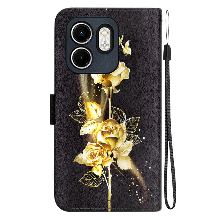 Funda de Cuero para Infinix Hot 50I Smart 9 con Dibujo de Colores y Textura de Cristal (Mariposa Dorada y Rosa)