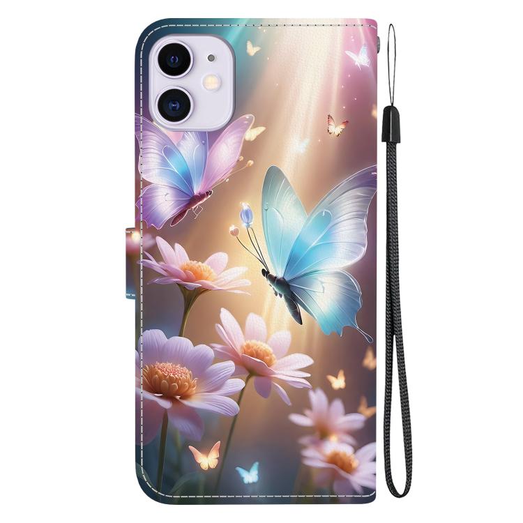 Funda de Cuero para iPhone 11 con Dibujo de Colores y Textura de Cristal (Mariposa, Amor y Flores)