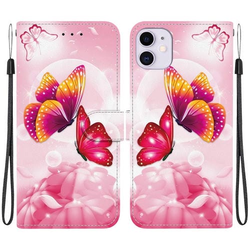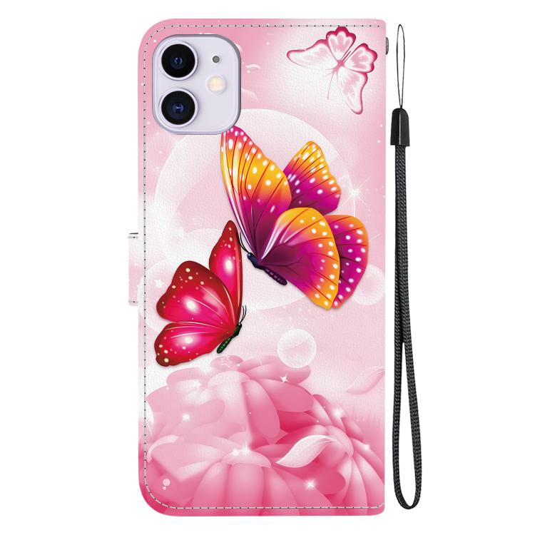 Funda de Cuero para iPhone 11 con Dibujo de Colores y Textura de Cristal (Mariposas Rosas)