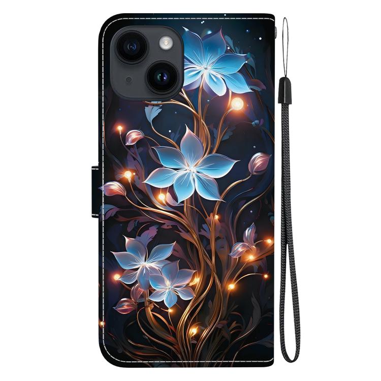 Funda de Cuero iPhone 15 Dibujo de Colores Textura de Cristal (Flor de Linterna Pequeña)