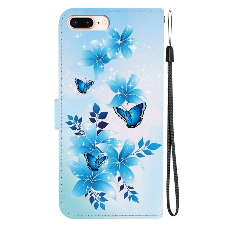 Funda de Cuero iPhone 7 Plus/8 Plus Dibujo Colores Textura Cristal (Mariposas Azules)