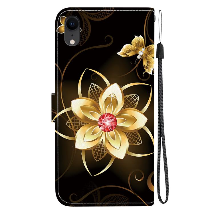 Funda de Cuero iPhone Xr Dibujo de Colores Textura de Cristal (Flor Dorada)