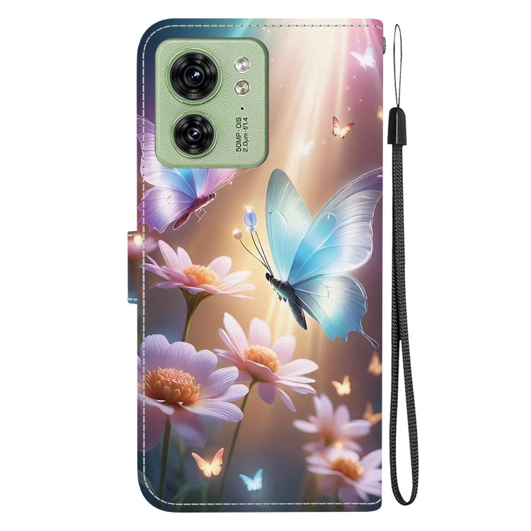 Funda de Cuero con Dibujo de Colores y Textura de Cristal para Motorola Edge 40 (Mariposa, Amor y Flores)