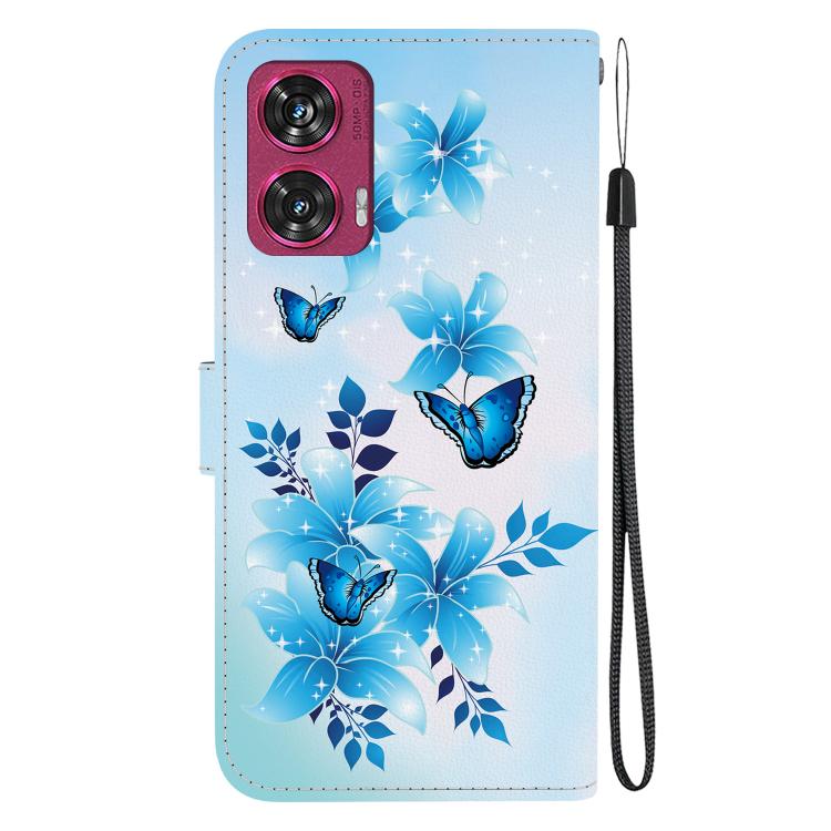 Funda de Cuero para Motorola Edge 50 Fusion con Dibujo de Colores y Textura de Cristal (Mariposas Azules)