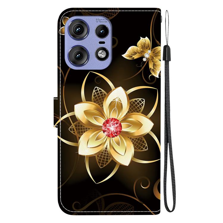 Funda de Cuero con Dibujo y Textura de Cristal para Motorola Edge 50 Pro (Flor Dorada)