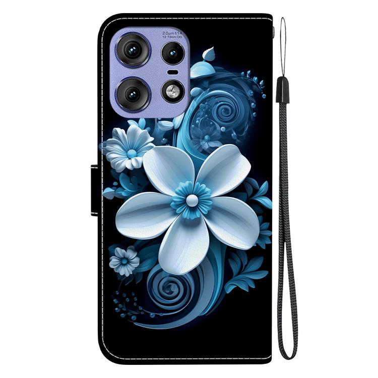 Funda de Cuero con Dibujo de Colores y Textura de Cristal para Motorola Edge 50 Pro (Orquídea Negra)