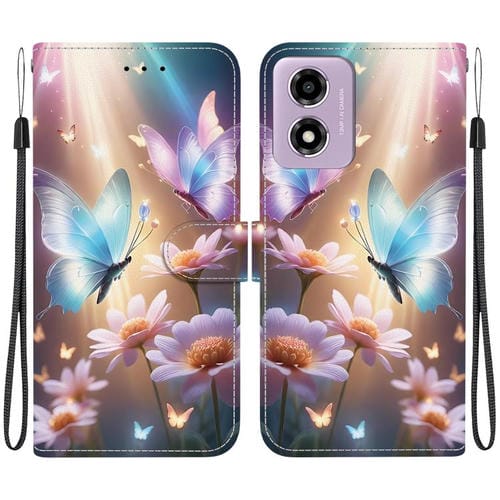 Funda de Cuero para Motorola Moto G04S/E14 con Dibujo de Colores y Textura de Cristal (Mariposa, Amor y Flores)