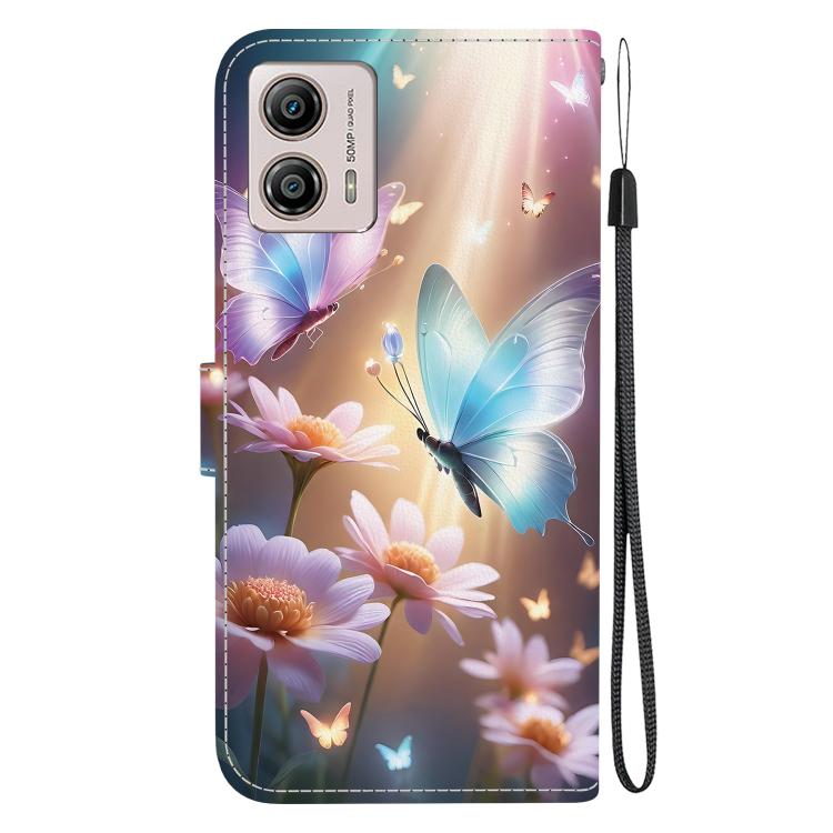 Funda de Cuero Motorola Moto G13/G23/G53 con Dibujo de Colores y Textura de Cristal (Mariposa, Amor y Flores)