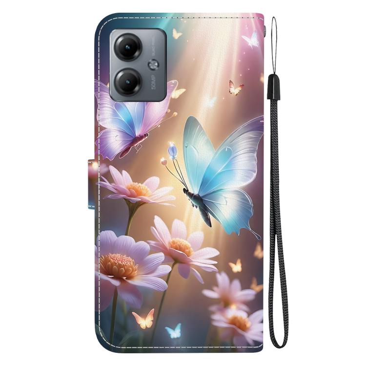 Funda de Cuero para Motorola Moto G14 con Dibujo de Colores y Textura de Cristal (Mariposa, Amor y Flores)