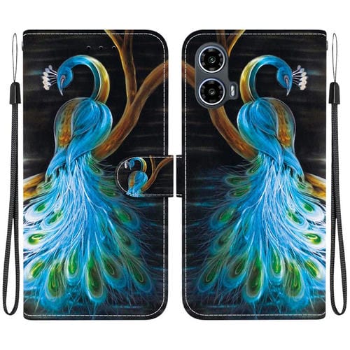 Funda de Cuero Motorola Moto G34 5G con Dibujo de Colores y Textura de Cristal (Pavo Real)