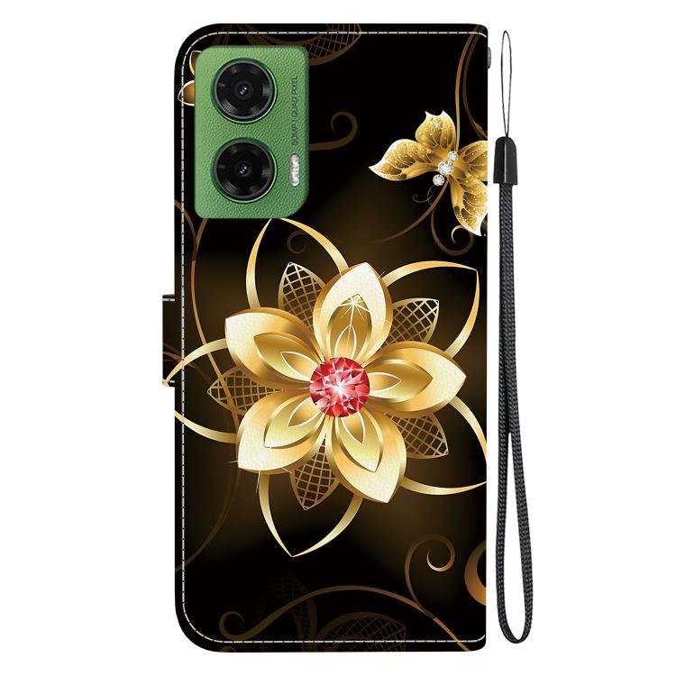 Funda de Cuero para Motorola Moto G35 con Dibujo de Colores y Textura de Cristal (Flor Dorada)