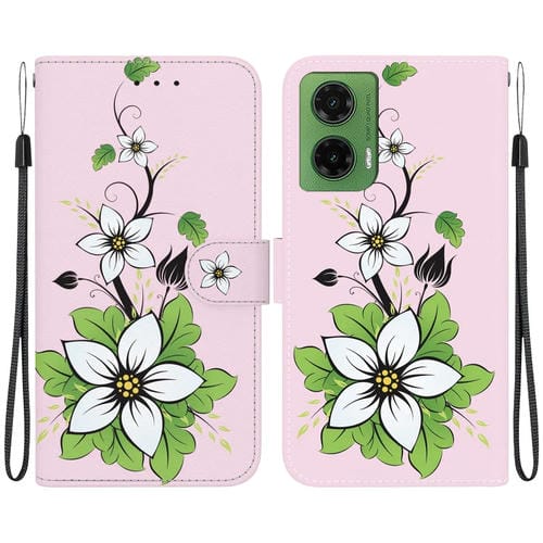 Funda de Cuero con Dibujo de Colores y Textura de Cristal para Motorola Moto G35 (Lily)