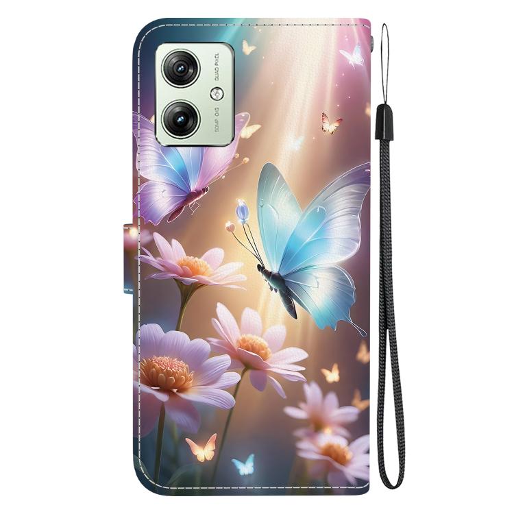Funda de Cuero para Motorola Moto G54 con Dibujo de Colores y Textura de Cristal (Mariposa, Amor y Flores)