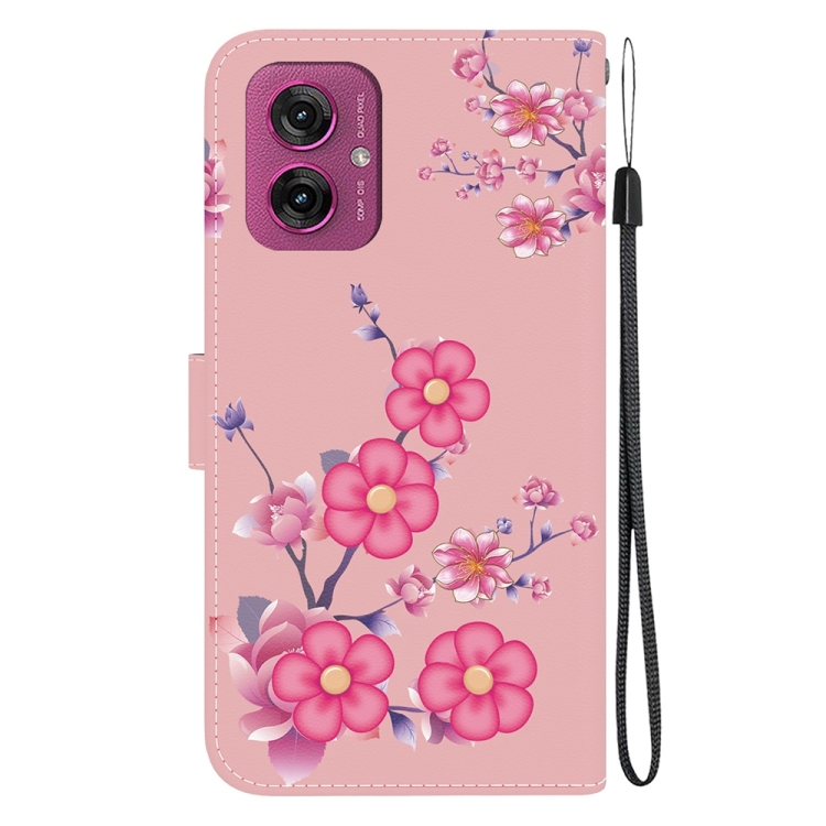 Funda de Cuero para Motorola Moto G55 con Dibujo de Colores y Textura de Cristal (Flores de Cerezo)