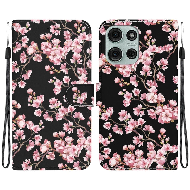 Funda de Cuero para Motorola Moto G75 5G con Dibujo de Colores y Textura de Cristal (Flor de Ciruelo)