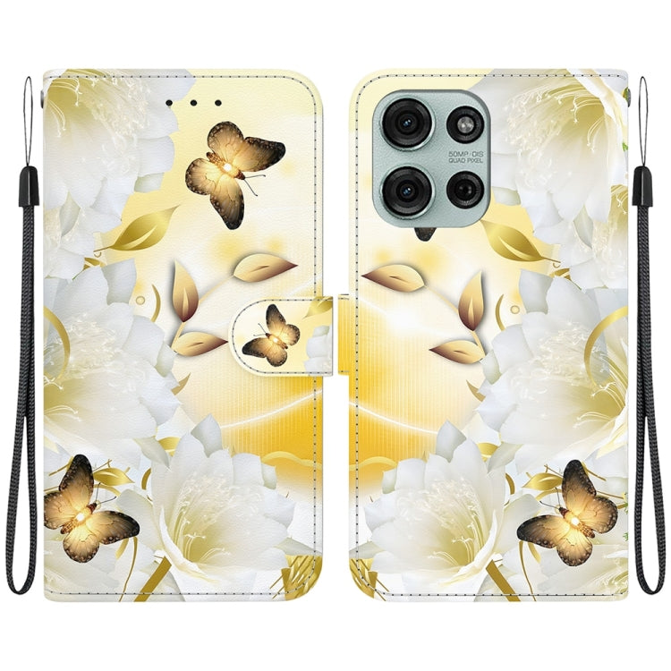 Funda de Cuero para Motorola Moto G75 5G con Dibujo de Colores y Textura de Cristal (Mariposa Dorada Epiphyllum)