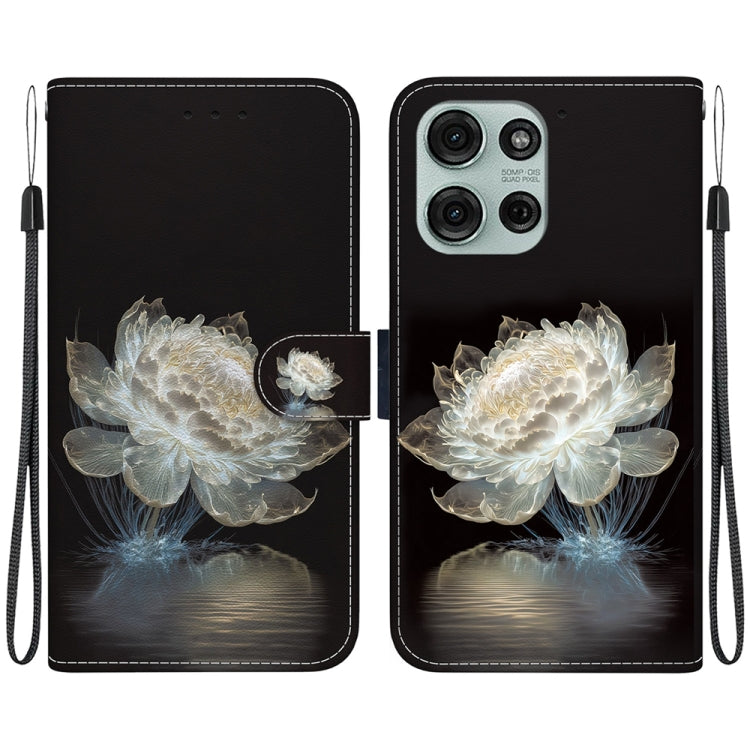 Funda de Cuero Motorola Moto G75 5G con Dibujo de Colores y Textura de Cristal (Peonía de Cristal)