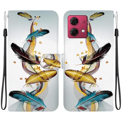 Funda de Cuero para Motorola Moto G84 con Dibujo de Colores y Textura de Cristal (Plumas de Mariposa Doradas)