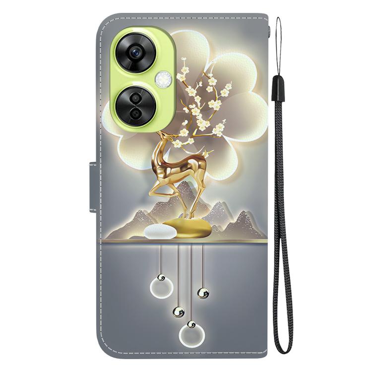Funda de Cuero con Dibujo y Textura de Cristal para OnePlus Nord CE 3 Lite/N30 (Ciervo Sika)