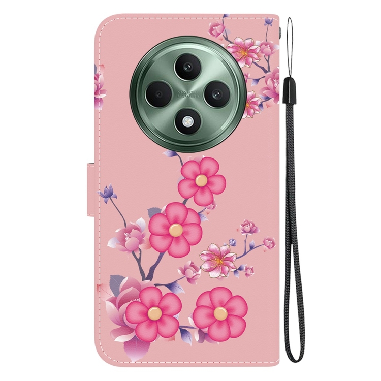Funda de Cuero con Dibujo de Colores y Textura de Cristal para Oppo Reno12 F 5G (Flores de Cerezo)