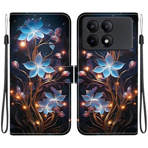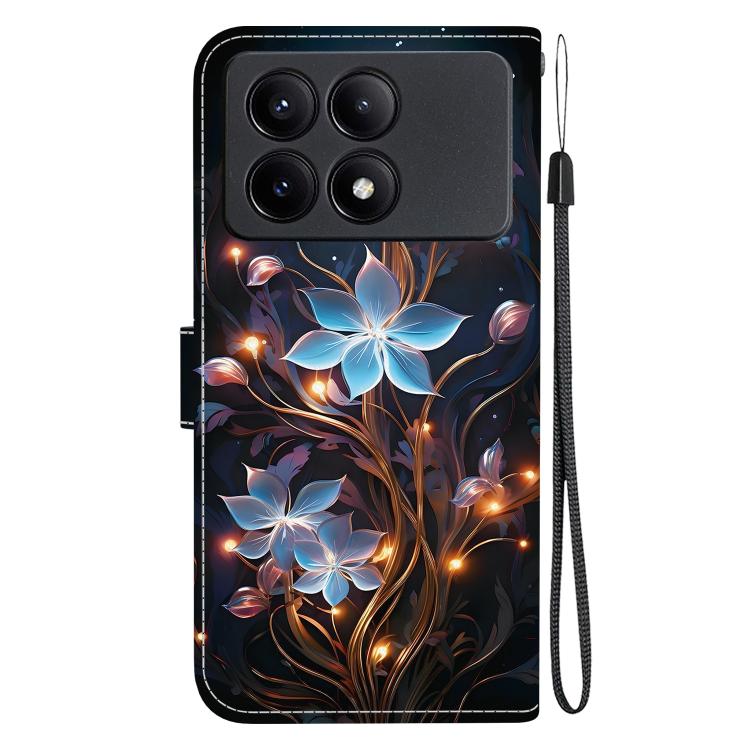 Funda de Cuero con Dibujo de Colores y Textura de Cristal para Redmi K70E/Poco X6 Pro (Flor de Linterna Pequeña)