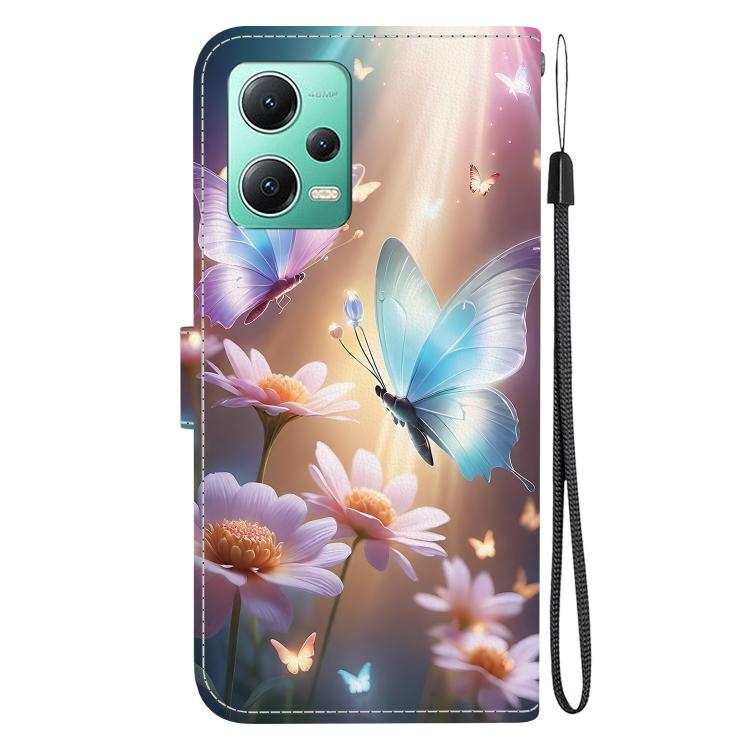 Funda de Cuero con Dibujo de Colores y Textura de Cristal para Redmi Note 12 5G/Poco X5 (Mariposa y Flor)