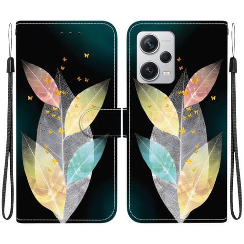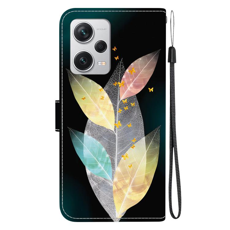 Funda de Cuero con Dibujo de Colores y Textura de Cristal para Redmi Note 12 Pro+ 5G (Hojas de Colores)
