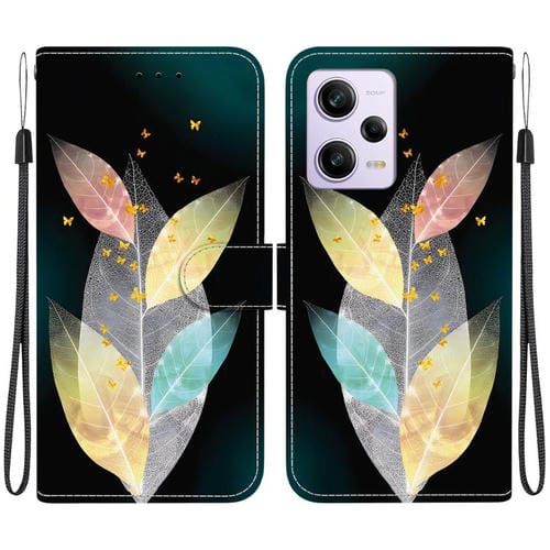 Funda de Cuero con Dibujo de Colores y Textura de Cristal para Redmi Note 12 Pro/Poco X5 Pro (Hojas de Colores)