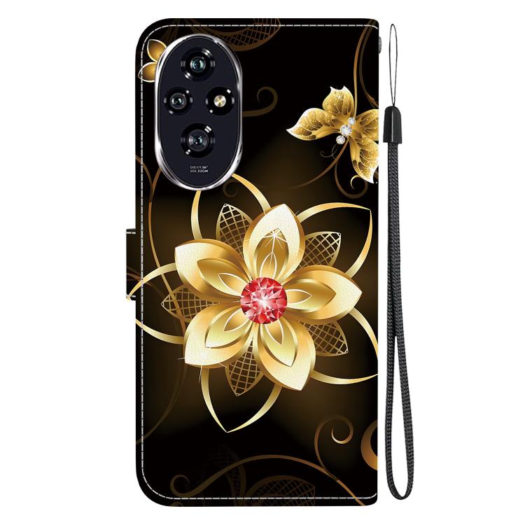 Funda de Cuero con Dibujo y Textura de Cristal para Honor 200 5G (Flor Dorada)