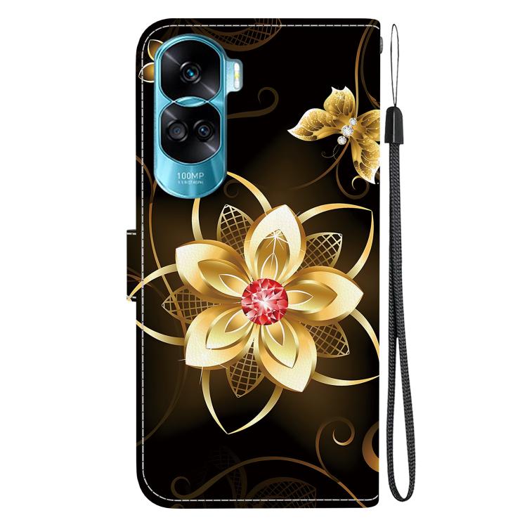 Funda de Cuero Honor 90 Lite con Dibujo de Colores y Textura de Cristal (Flor Dorada)