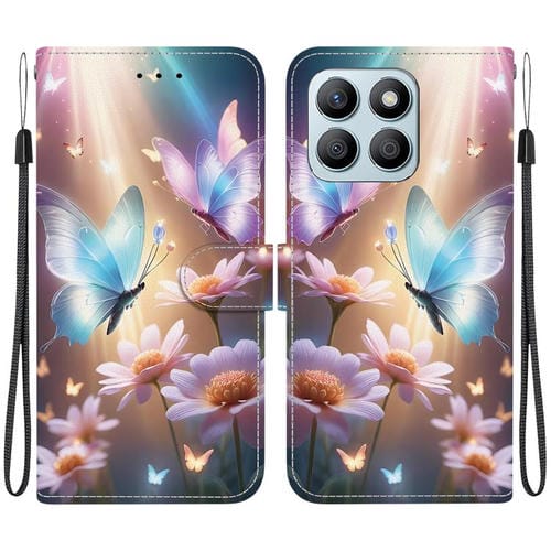 Funda de Cuero para Honor X8B con Dibujo de Colores y Textura de Cristal (Mariposa, Amor y Flores)