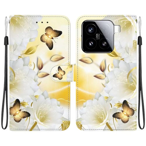 Funda De Cuero Con Dibujo De Colores Y Textura De Cristal Para Xiaomi 15 (Mariposa Dorada Epiphyllum)