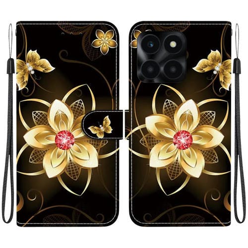 Funda de Cuero para Honor X6A con Dibujo y Textura de Cristal (Flor Dorada)