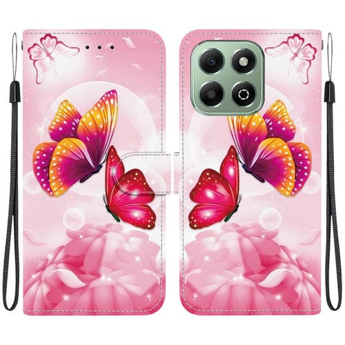 Funda de Cuero Honor X6B con Dibujo Mariposas Rosas y Textura de Cristal