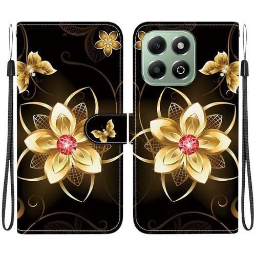 Funda de Cuero Honor X6B con Dibujo Color y Textura de Cristal (Flor Dorada)