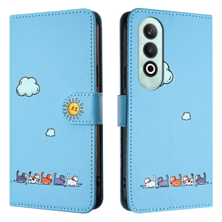 Funda de Cuero con Dibujos de Gatos para OnePlus Nord Ce4 5G (Azul)