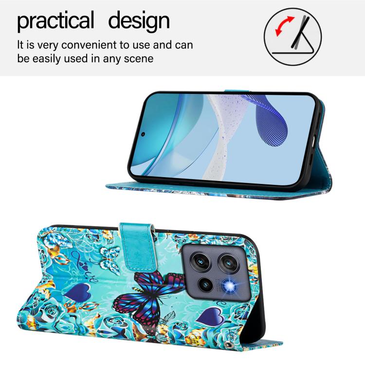 Funda de Cuero para Motorola Moto G Stylus 5G 2025 con Dibujo de Colores y Tejido Liso (Mariposa Cariñosa)