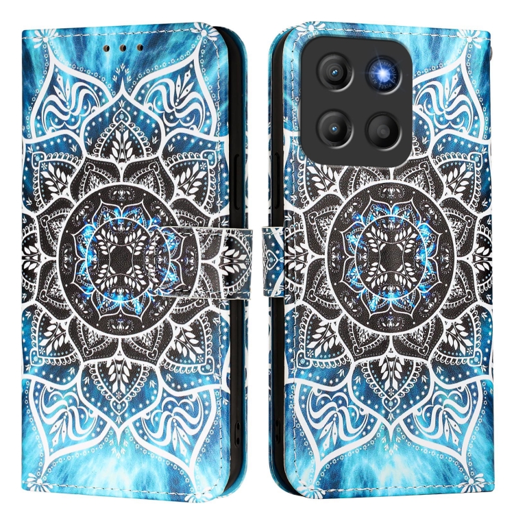 Funda de Cuero para Motorola Moto G15 con Diseño Mandala Submarino (Azul)